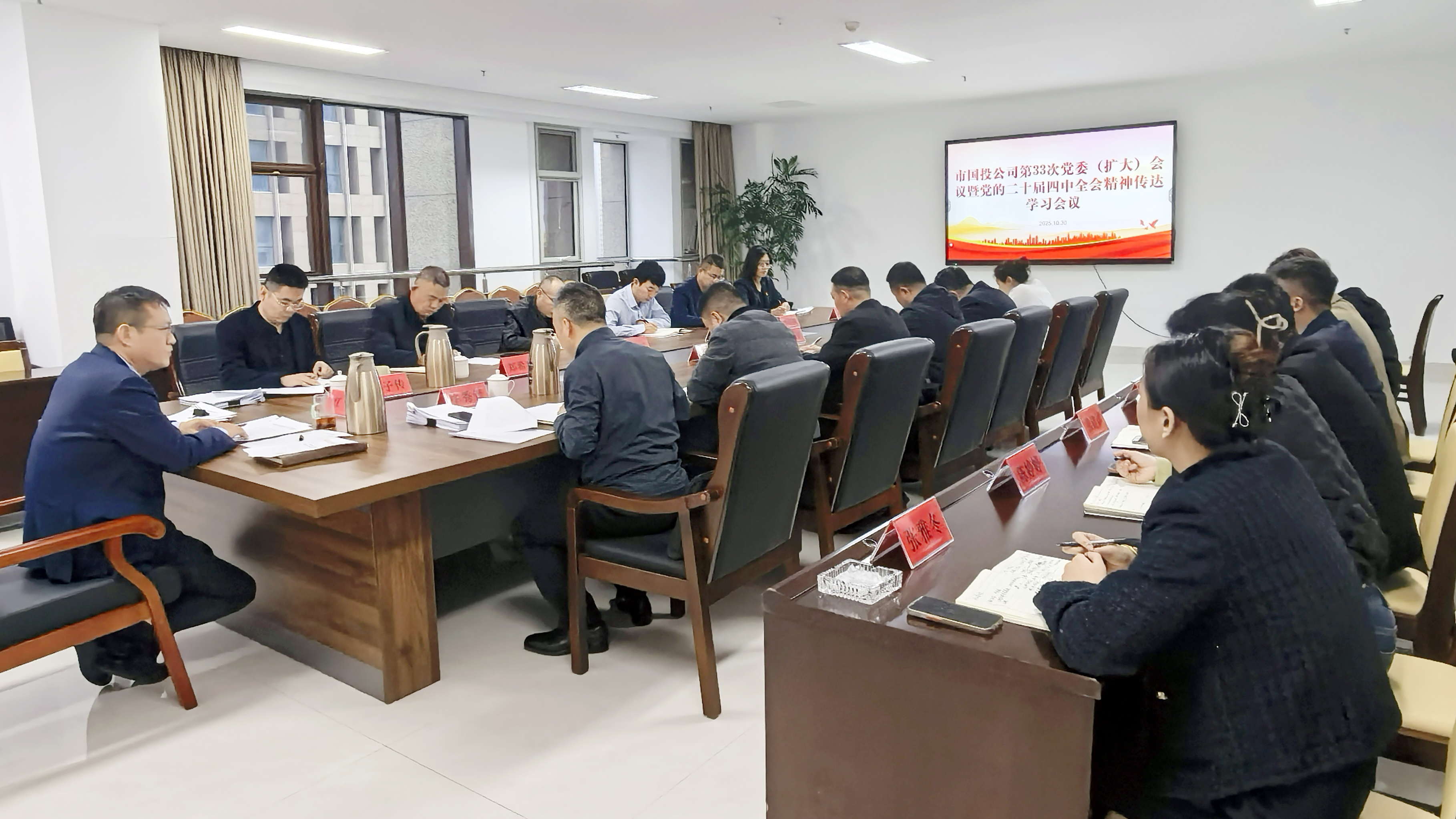 10月30日下午,市國投公司召開黨委(擴(kuò)大)會議,專題傳達(dá)學(xué)習(xí)黨的二十屆四中全會精神。公司黨委書記、董事長江波主持會議并講話。公司黨委班子、財務(wù)總監(jiān)、各權(quán)屬公司主要負(fù)責(zé)人、各部室臨時負(fù)責(zé)人參加會議。會議指出,黨的二十屆四中全會是在以中國式現(xiàn)代化